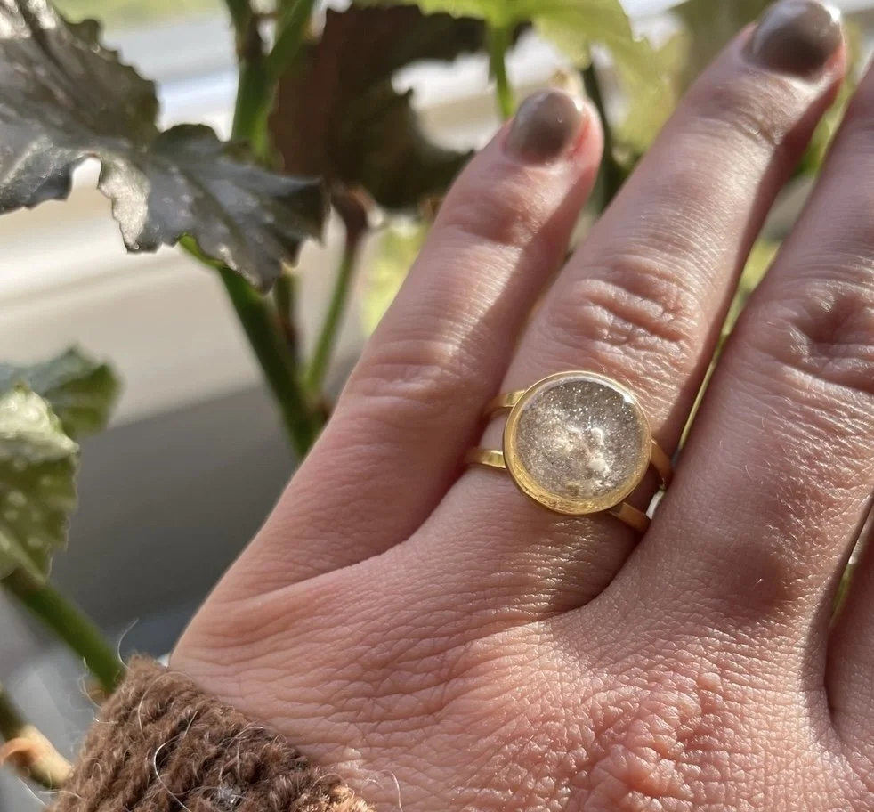 Crafting memorial pieces is a deeply meaningful process for me. The first cremation necklace that I made was for my best friend when she lost her beloved German Shepard. I will keep her reaction to the pendant near to my heart forever. I feel so honored every time I’m trusted to make a forever keepsake of someones loved one or pet. The ashes will always be treated with respect and any remaining ash will be returned with your keepsake.